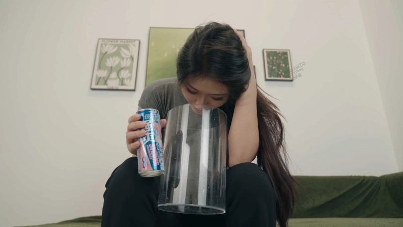 后面她吃了两根香蕉,两瓶强爽,一瓶雪碧,但是吐不出来。