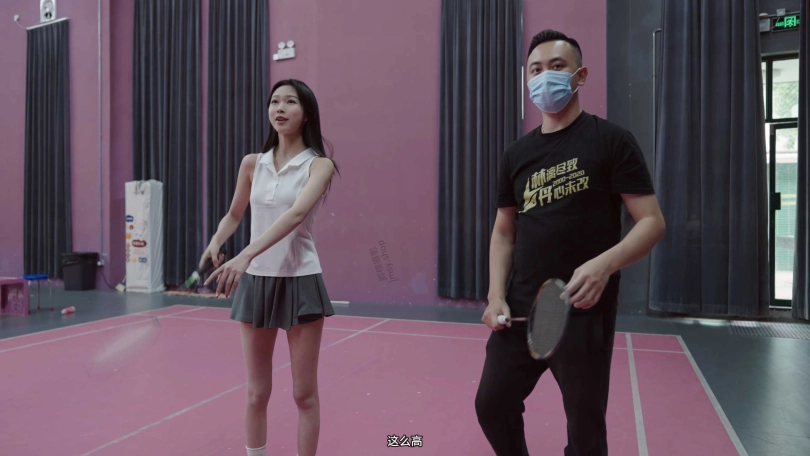 剧情故事:教练教腿腿打羽毛球,暴汗运动后跟着她回到家。